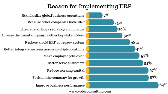 In a Gartner survey, when asked about the reasons for purchasing cloud ERP software, the main reasons indicated by survey respondents were: